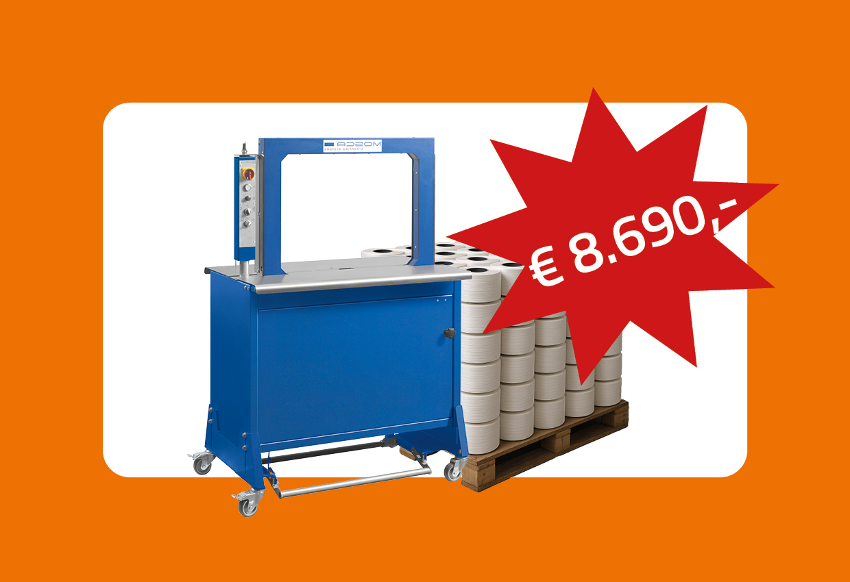 Ob Stretchmaschinen, Umreifungsgeräte, Kartonaufrichter oder Füllmaterial – hier finden Sie regelmäßig stark reduzierte Produkte und limitierte Promotions, mit denen Sie Ihre Verpackungsprozesse effizienter und kostengünstiger gestalten können.
